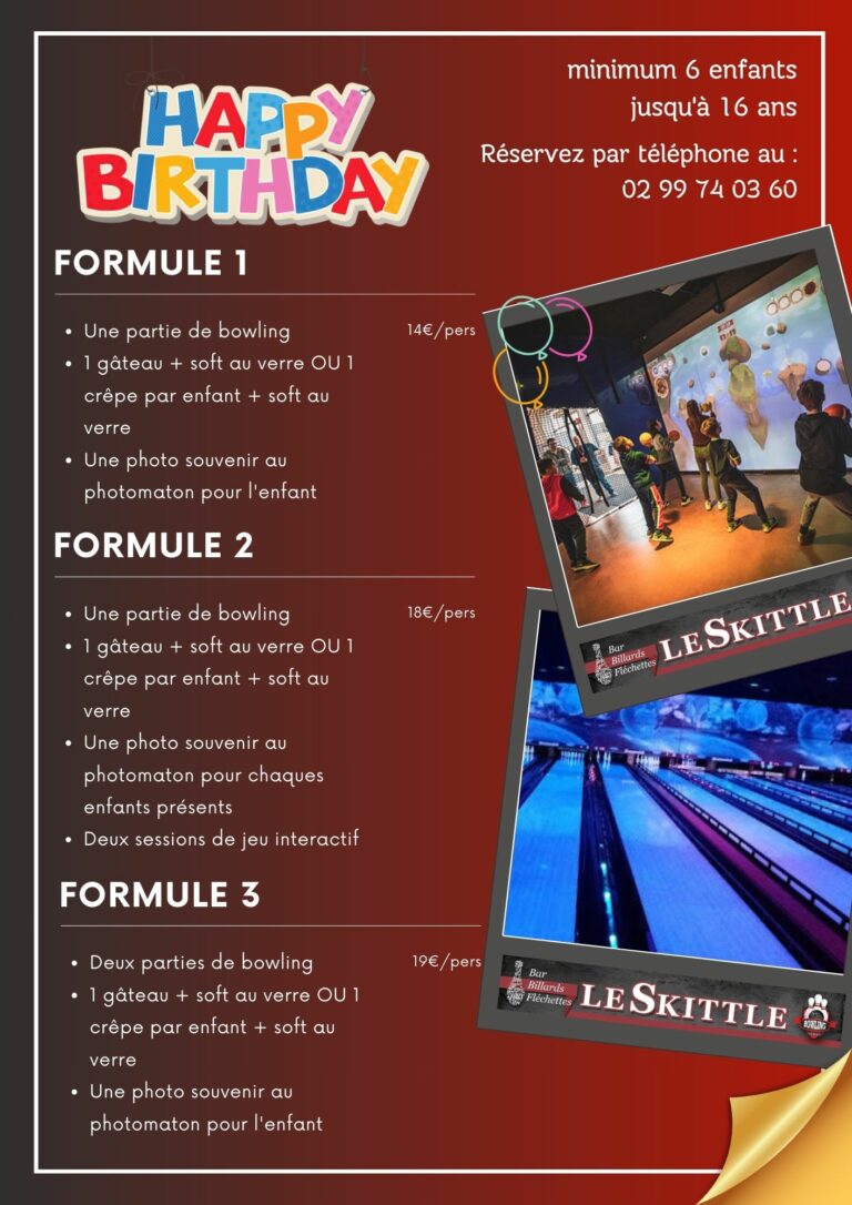 Au cours de la partie de bowling, une personne de l’équipe du Bowling Skittle viendra prendre la commande des boissons pour le gouter. Lorsque celle-ci sera terminé, nous inviterons les enfants à remettre leurs chaussures, puis ils seront accompagnés à une table pour le goûter.